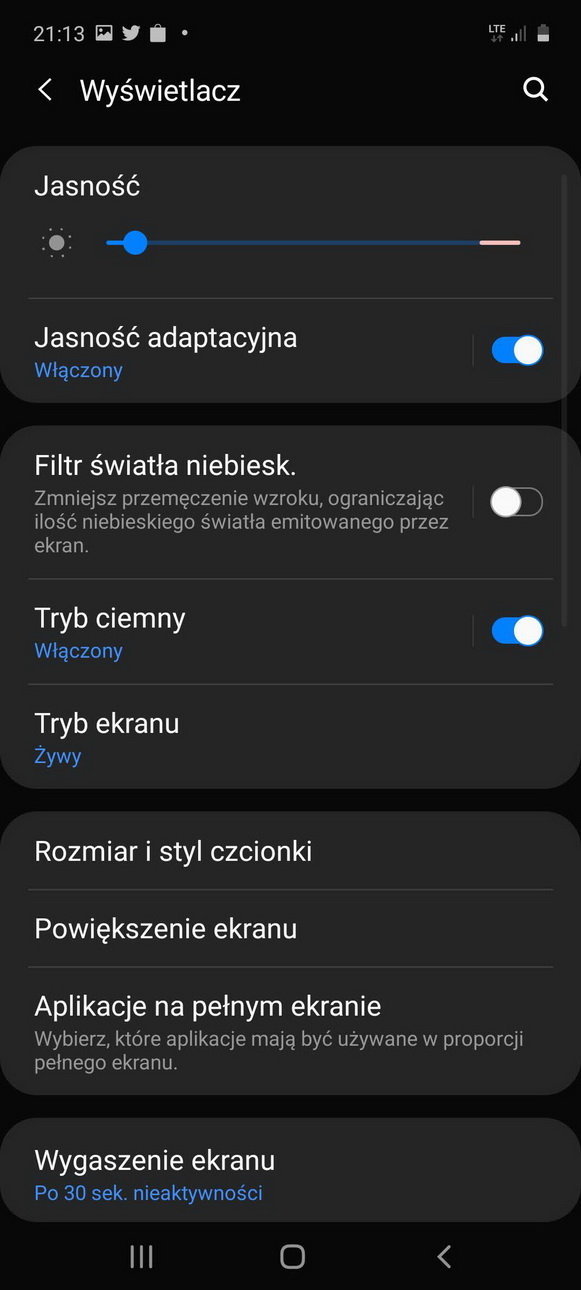Podobnie wygląda sytuacja w przypadku trybu ciemnego. Również z niego nie korzystam, wolę bowiem czarną czcionkę na białym tle aniżeli odwrotnie, dlatego też nie przydałby się, ale znam osoby, które chętnie “przełączają się” w tryb ciemny. Ma on jednak swój urok i One UI 2 nie traci nic na swojej wizualności – nadal cieszy oko.