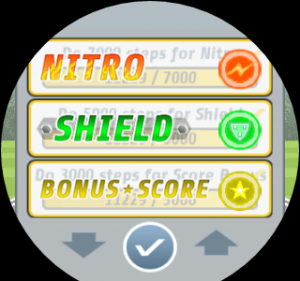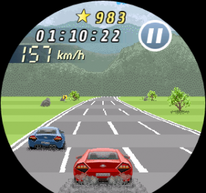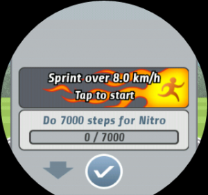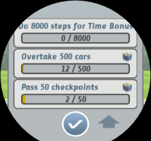 - My Fitness Racer – nazwa co najmniej myląca. Jest to bardzo prosta gra wyścigowa na smartwatcha, która pozwala uzyskiwać dodatkowe bonusowe rozwiązania, jak aktywowanie tarczy ochronnej dla swojego samochodu, przyspieszenie nitro, czy bonusy, pod warunkiem że uzyska się wynik odpowiedniej ilości kroków. W tym celu łączy się z Google Fit i zależnie od aktywnościowego wyniku z Twojego dnia, udostępnia poszczególne warianty do dodania w grze. Proste i teoretycznie może i nawet trochę głupkowate, ale przy przepędzaniu nudy – doskonałe! No i jak się wciągniesz w rozgrywkę, to motywuje do ruszenia tyłka ;).