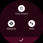 - przycisk TOOL – pierwszy od góry – pozwala przełączać się pomiędzy informacjami, takimi jak ilość kroków, kompas, wysokość nad poziomem morza, ciśnienie atmosferyczne (hPa), godziny wschodu i zachodu słońca. Wiele z tych punktów pozwala się podejrzeć bardziej szczegółowo, np. ciśnienie pojawi się w formie wykresu prezentującego, jak kształtowało się przez cały dzień. Podobnie pokazane zostają skrajne punkty wysokościowe, w których się poruszałeś etc.