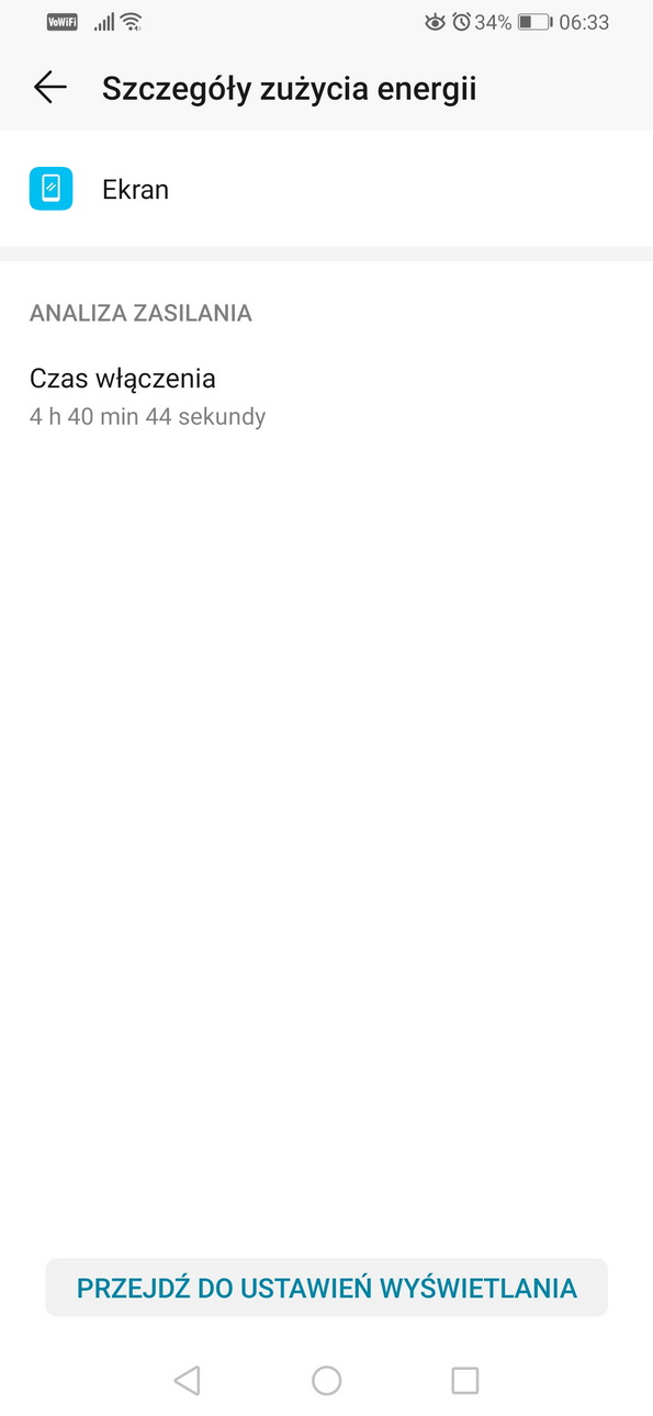 Na koniec słów kilka na temat wyświetlacza. IPS-LCD o rozdzielczości 2340x1080p (FHD+), którą możesz przełączyć na niższą lub postawić na regulację inteligentną, która sama dostosuje obraz w zależności od wyświetlanego materiału. Sam ekran – jak wspomniałem – jest naprawdę duży – 6,59 cala, które… fizycznie są odczuwalne. Szczególnie w przy obsłudze jedną ręką i wyłączonych gestach. Na szczęście nawigację można usprawnić i wówczas proste śliźnięcia przy krawędziach pozwalają łatwiej poradzić sobie z tak znaczną powierzchnią.