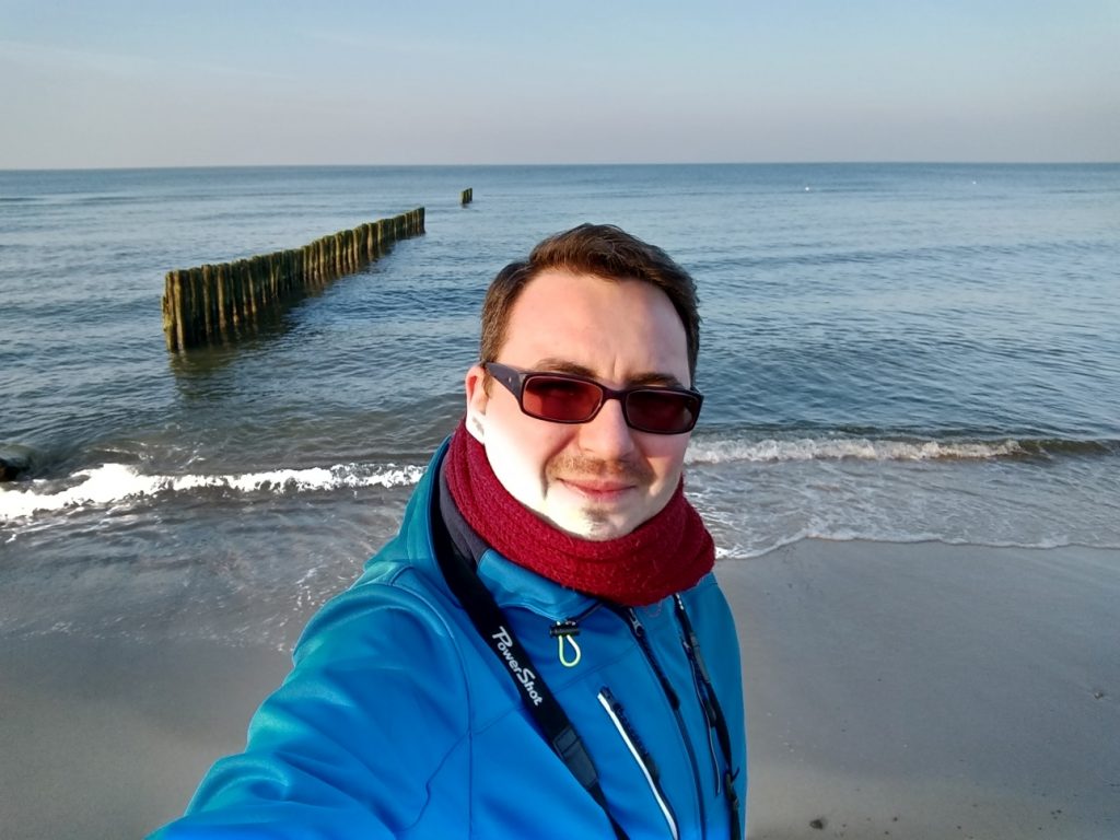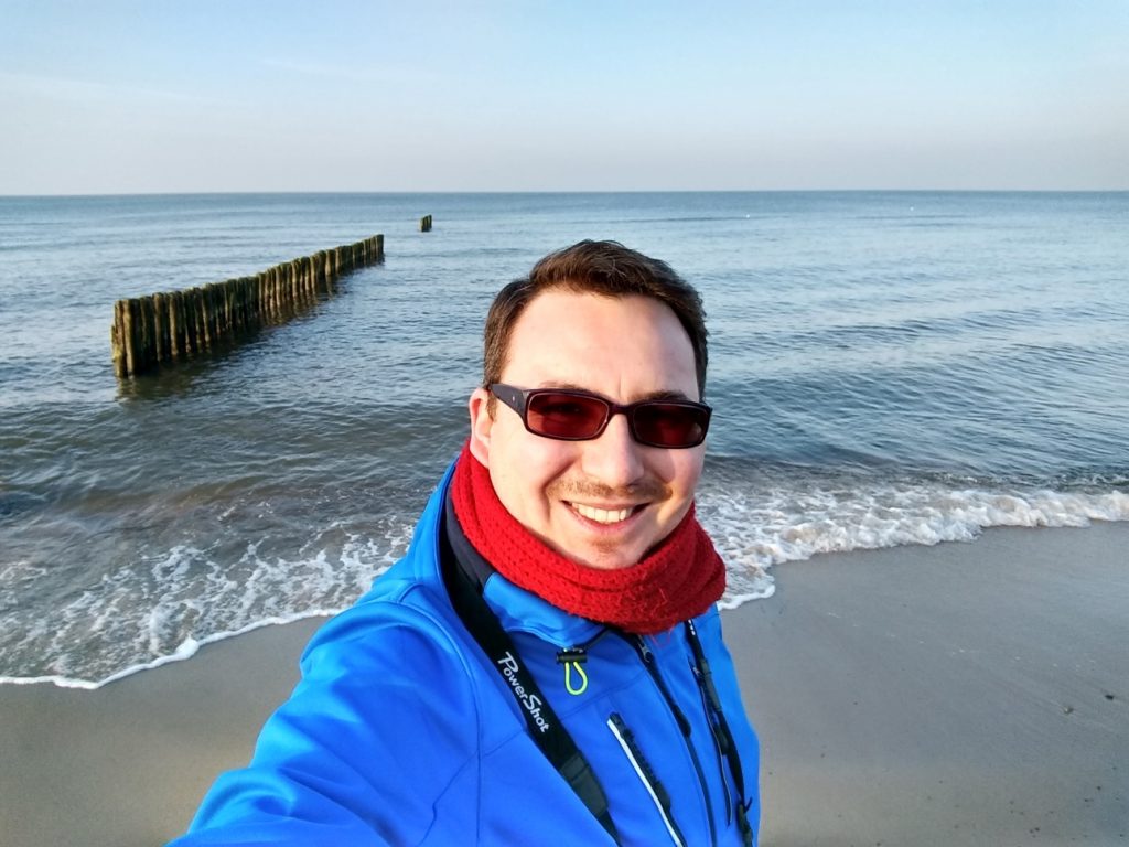 - przy ostrym świetle frontowa kamerka miała problemy z poprawnym balansem bieli (widać to na jednym z selfie ze mną na tle morza – moja broda i prawy polik wyglądają, jak pomalowane pianką do golenia);