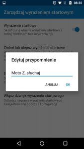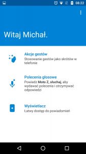 Lenovo daje od siebie kilka aplikacji, które rozszerzają podstawową funkcjonalność, ale najfajniejsze jest to, że wreszcie można obsługiwać smartfony tego producenta niemal bezdotykowo również w Polsce. To, co było flagową funkcją Moto X – która rodziła całą linię produktową tych urządzeń, a która debiutowała w czasach, kiedy miał Motorolę w swoich rękach Google – teraz jest już dostępne również w języku polskim. Jest dla mnie wielce nieodkrytą zagadką, że wyszukiwarkowy gigant nie pozwala na to jeszcze w swoich Nexusach, skoro na Moto Z Play działało to świetnie. O czym mowa?