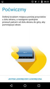 - przesunięcie kciukiem od prawego dolnego narożnika po przekątnej ku górze – pomniejsza cały obszar roboczy, aby osoby z małymi dłońmi nie miały problemu z obsługą jednym palcem.