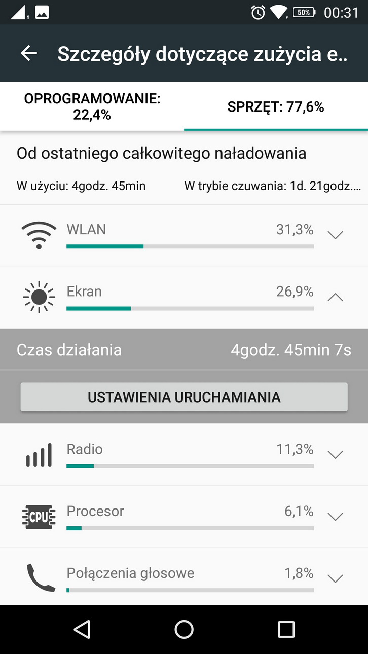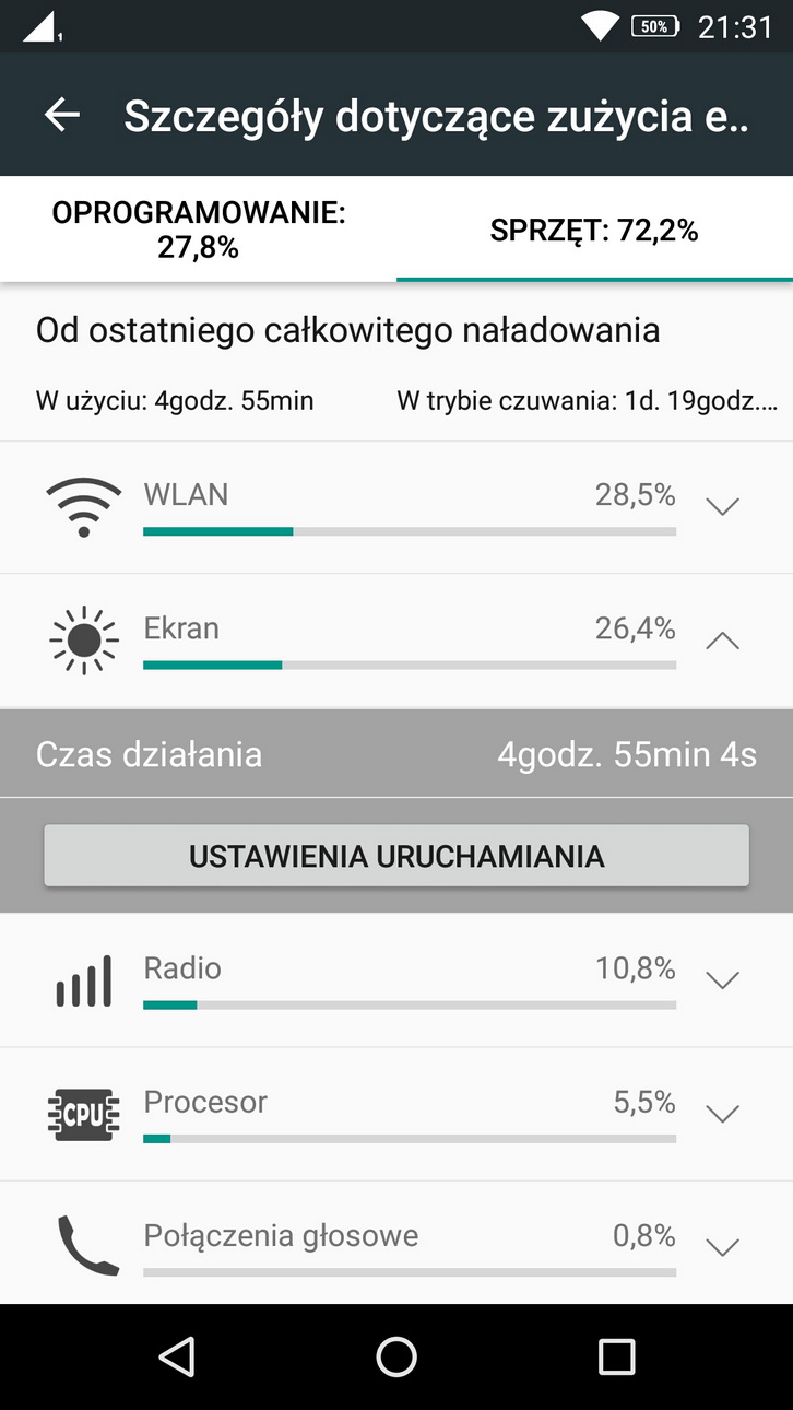 Smartfon Chińczyków – co istotne – przez noc praktycznie w ogóle nie pobierał energii. Było to tak minimalne, że zdarzało się, że kładąc się spać zostawiałem przykładowo na 50 procentach, a gdy się budziłem było tyle samo. W świecie smartfonów wydaje się to wręcz niemożliwe. A jednak!