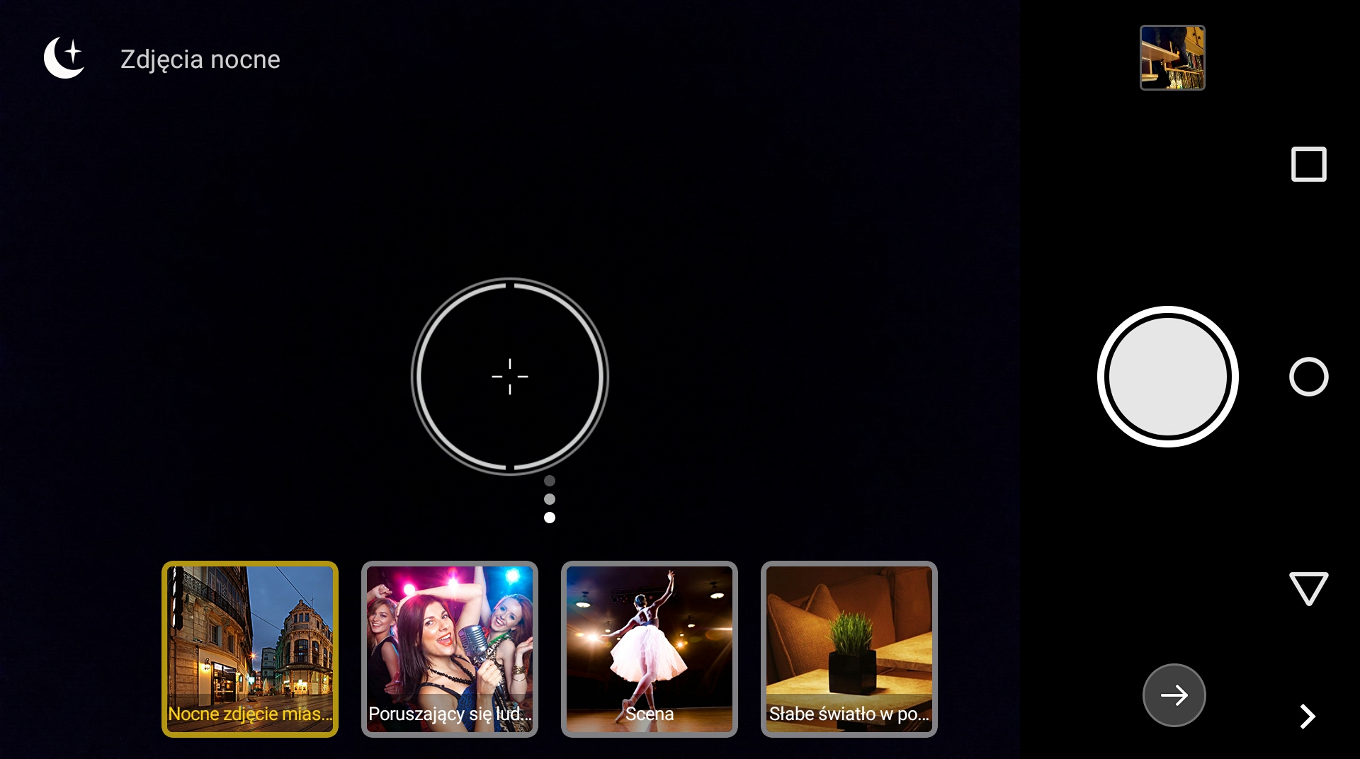 Podobne rozdzielenie jest także w trybie nocnych zdjęć, gdzie również mamy cztery efekty dzięki, którym możesz lepiej dostosować się do panujących warunków.