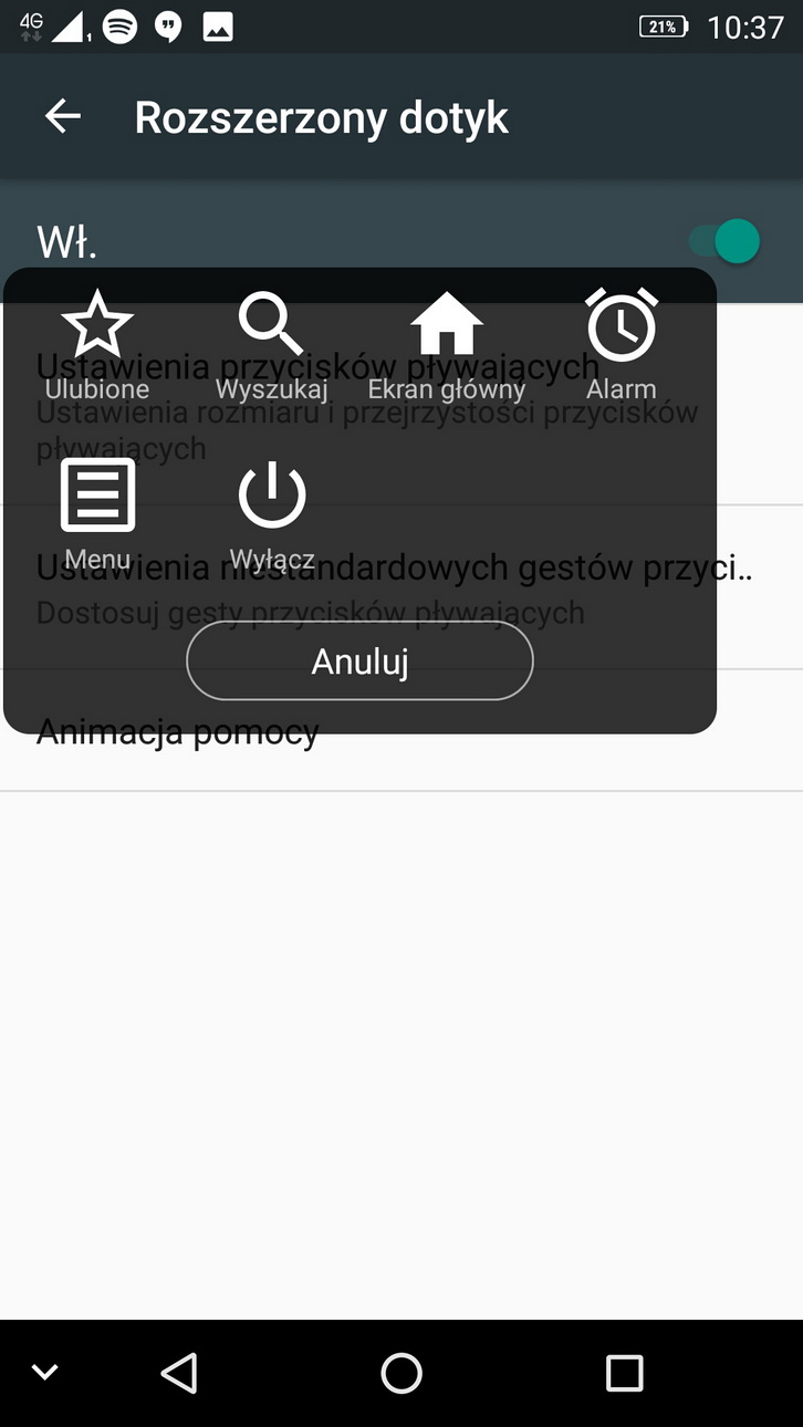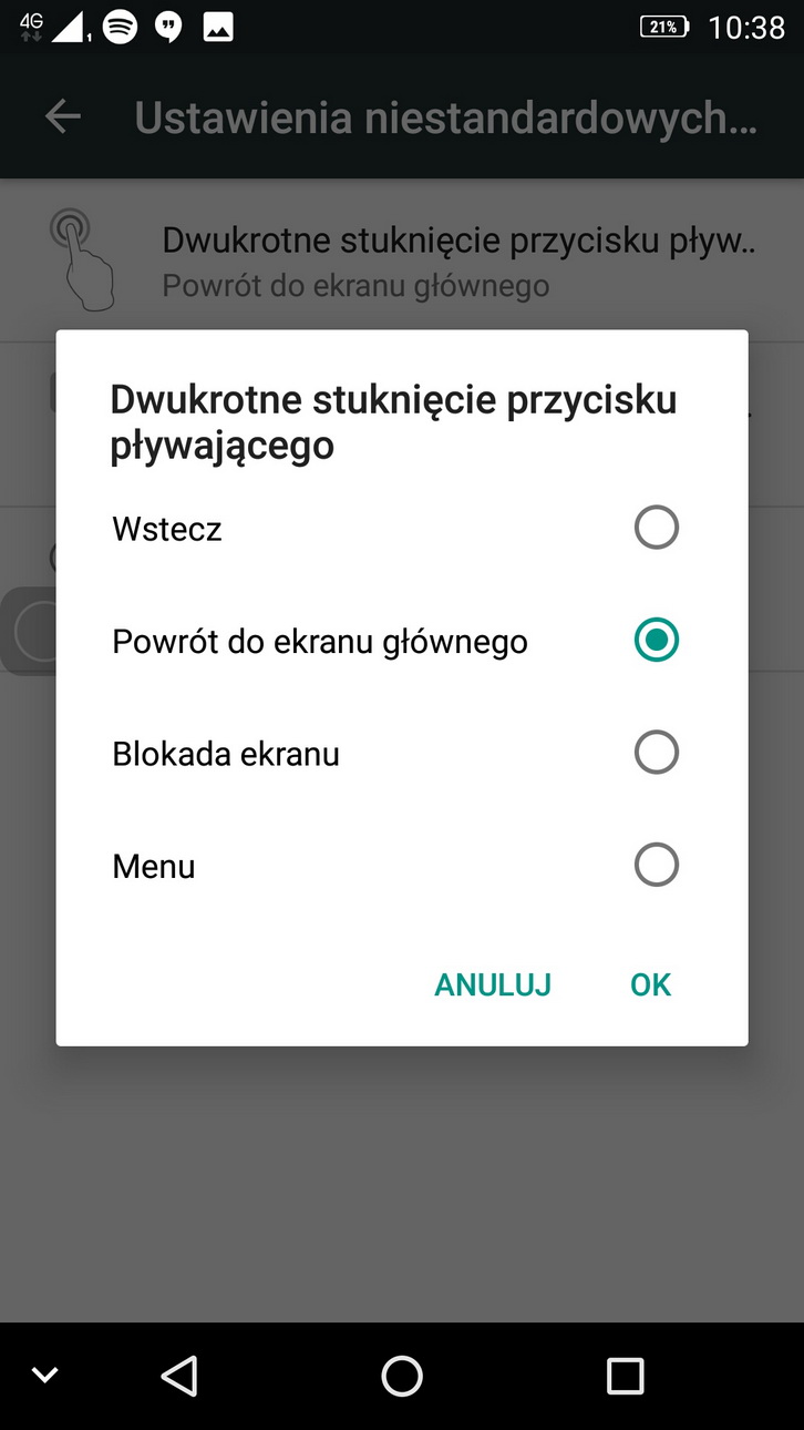 Dwukrotne tapnięcie w ów wirtualny przycisk powoduje powrót go głównego pulpitu, co oczywiście można również też zmienić. Pojedyncze stuknięcie lub długie naciśnięcie również reaguje na przypisane do nich zadania.