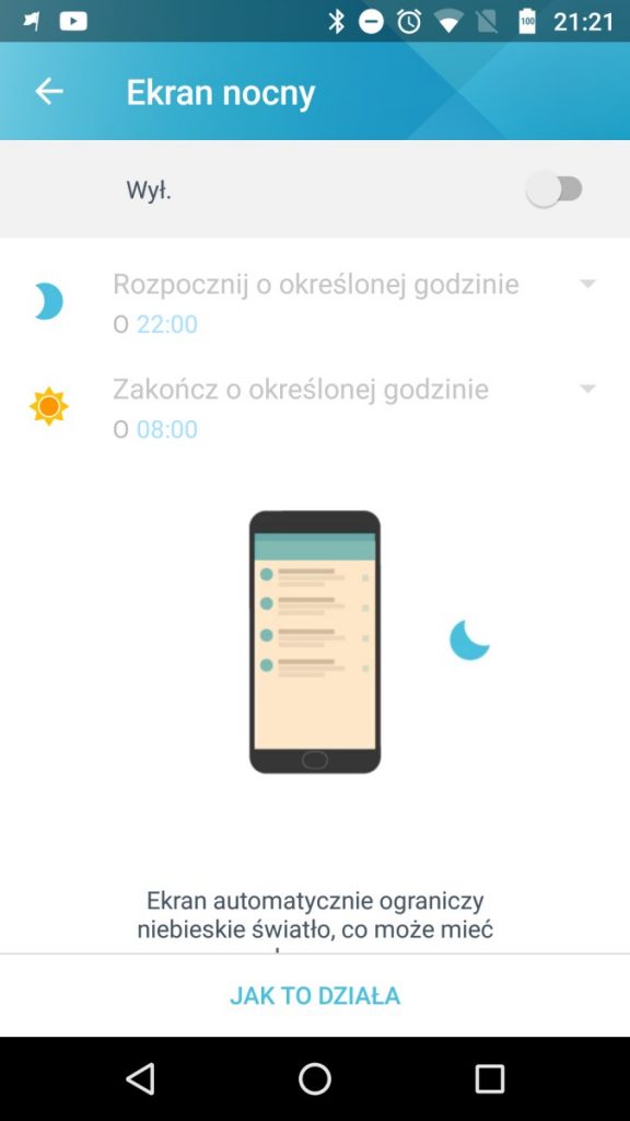 Ostatnim plusem, na który chcę tutaj zwrócić uwagę, jest obsługa funkcji Ekranu Nocnego, dzięki czemu system redukuje wyświetlanie niebieskiego światła, które może zbytnio razić oczy w czasie nocnego używania telefonu i wpływać negatywnie na zasypianie.
