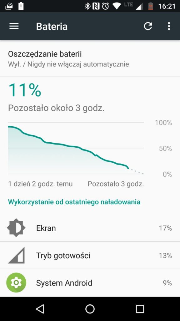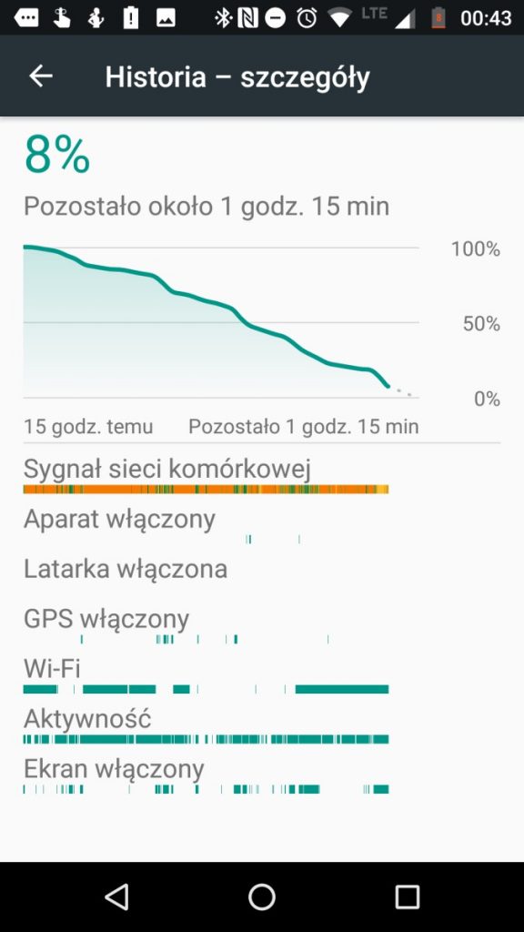 Kolejny punkt, który zasługuje na naprawdę solidne wyróżnienie. Motorola Moto G5s jedzie na jednym ładowaniu od 3,5 do przeszło 4h czasu pracy ekranu. I tak, to bardzo dobry wynik, stabilny i do tego rokujący nawet lepsze efekty u kogoś, kto nie ma aż takiego zapotrzebowania na moc i energię, jak ja w swojej codziennej pracy. W mniej aktywne weekendy byłem w stanie bez żadnych specjalnych problemów wyciągnąć nawet 4,5h SoT.