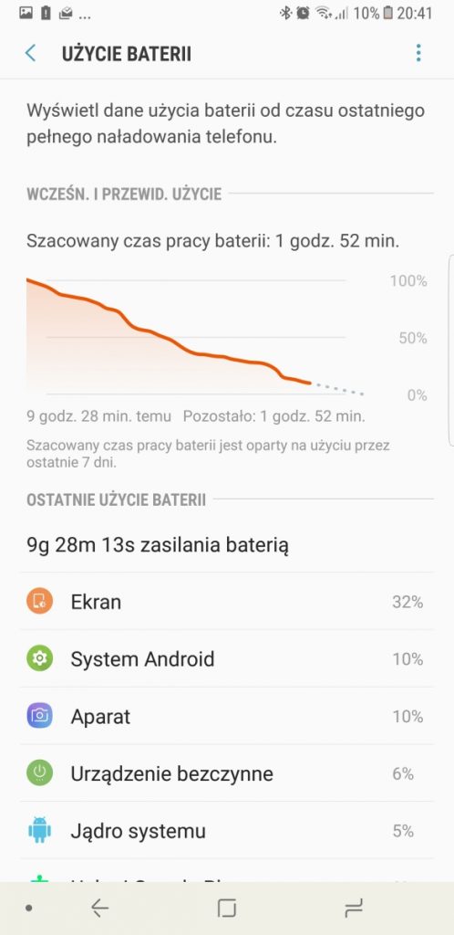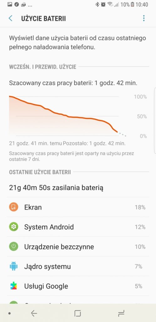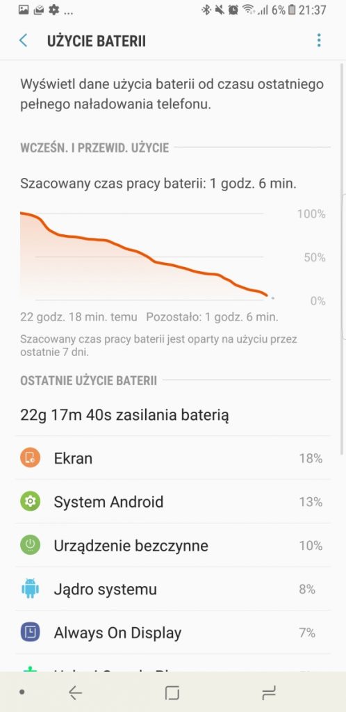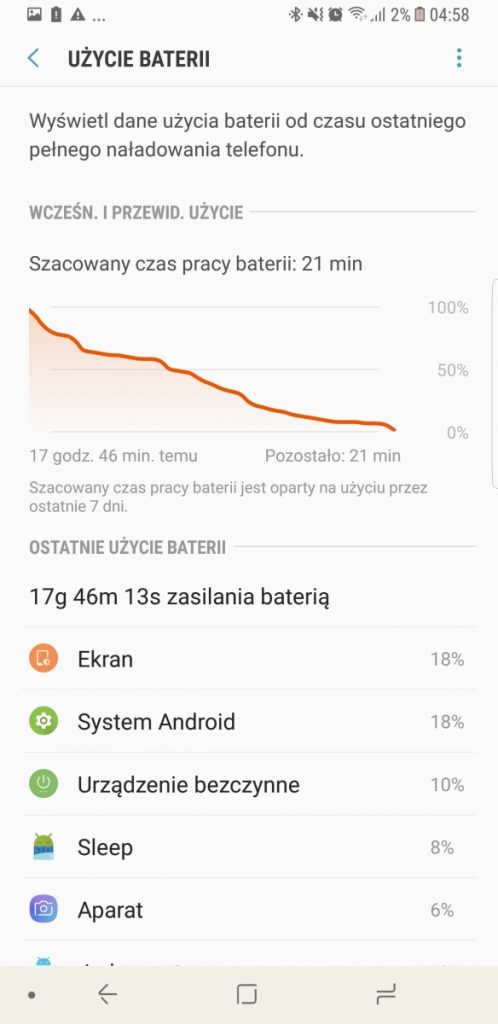 Tak, jak piętą Achillesa jest w Galaxy S8 bateria, tak jest nią też w Galaxy Note8. Po prostu – trudno mieć nadzieję, że tak potężny sprzęt, będzie na baterii o pojemności 3300mAh przy 6,3-calowym wyświetlaczu QHD+ działać nie wiadomo, jak długo. Sytuację ratuje ponownie szybkie ładowanie, które rzeczywiście sprawuje się tutaj na bardzo rozsądnym poziomie, więc Note8 szybko wraca do formy, ale nie da się ukryć, że czas działania ekranu w tych warunkach i tak wypada blado… Finalnie udawało mi się wyciągnąć 2,5h do 3h włączonego wyświetlacza. Właściwie cały czas działałem w trybie ręcznej regulacji jasności (bodajże na dwa dni przełączyłem się na automatyczną), sporo fotografowałem, nałogowo wręcz używałem rysika S Pen, kręciłem też dużo filmów, ciągle notowałem, wycinałem, a dodatkowo tworzyłem animowane napisy i rysunki do zdjęć wybranych jako tło w Wiadomości odręcznej, co później jako animowane GIF-y wysyłałem do moich bliskich.