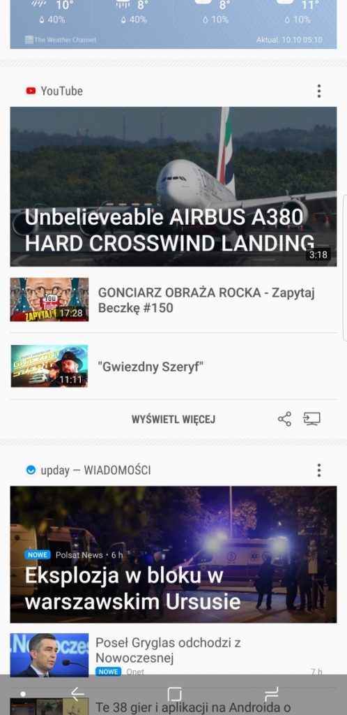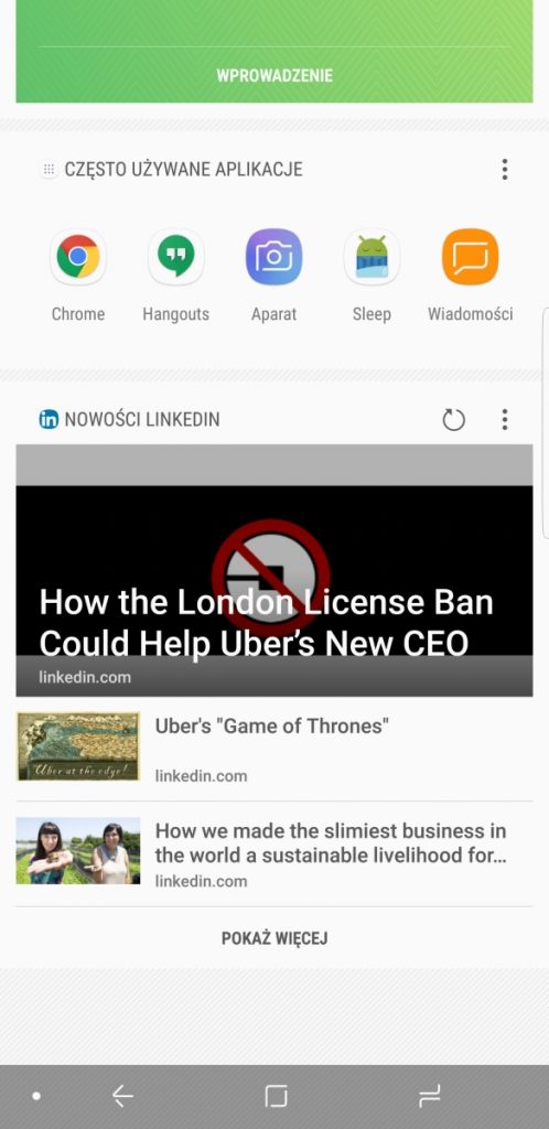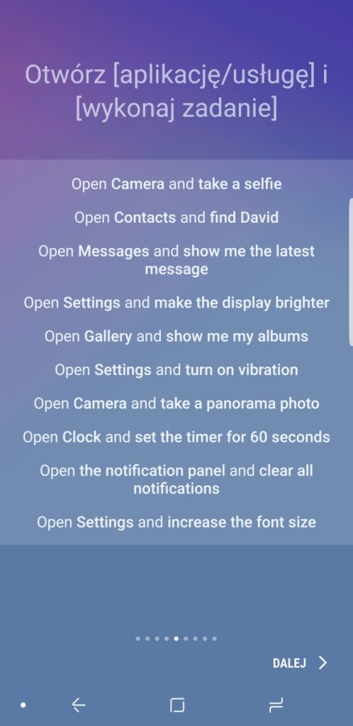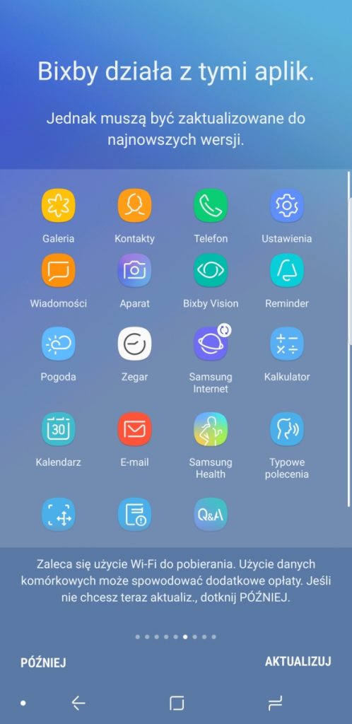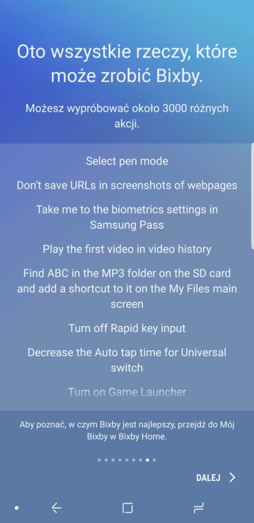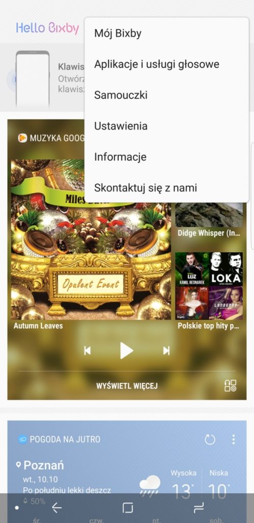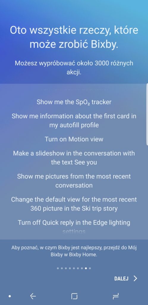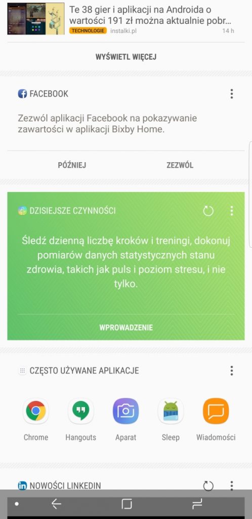 4. Bixby jest też swego rodzaju agregatorem newsów, informacji z serwisów społecznościowych, szybkim dostępem do muzyki, galerii ze zdjęciami, podglądem aktywności fizycznej. Z założenia potrafi też rozpoznawać fotografowane obiekty i działa w trybie rzeczywistości rozszerzonej AR w aparacie (podobnie, jak aplikacja World Around Me). Interfejs i komunikaty tekstowe są oczywiście w języku polskim.