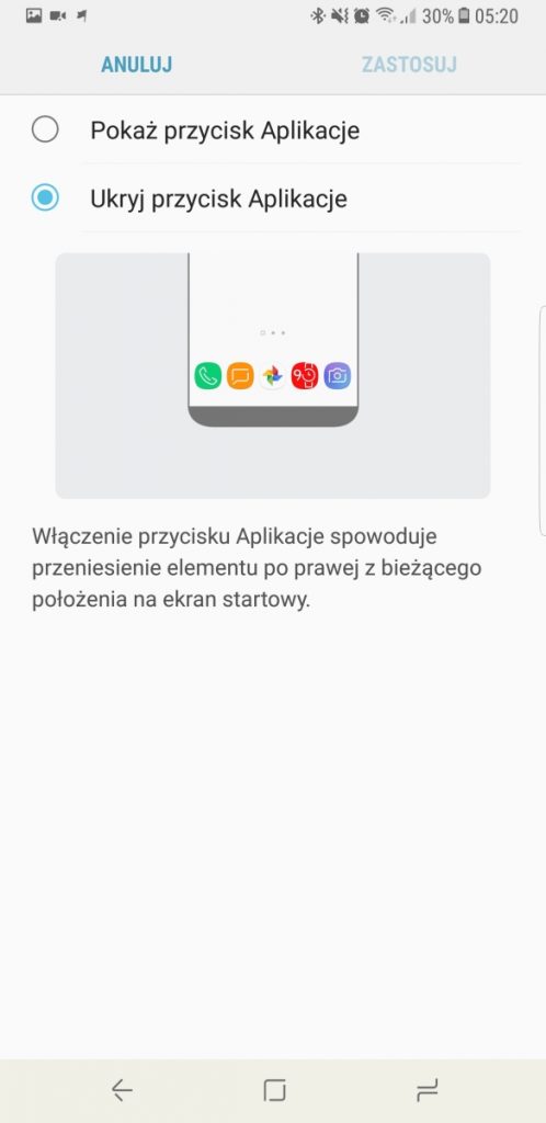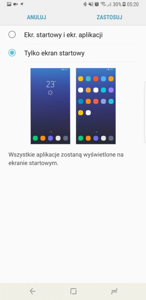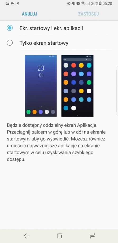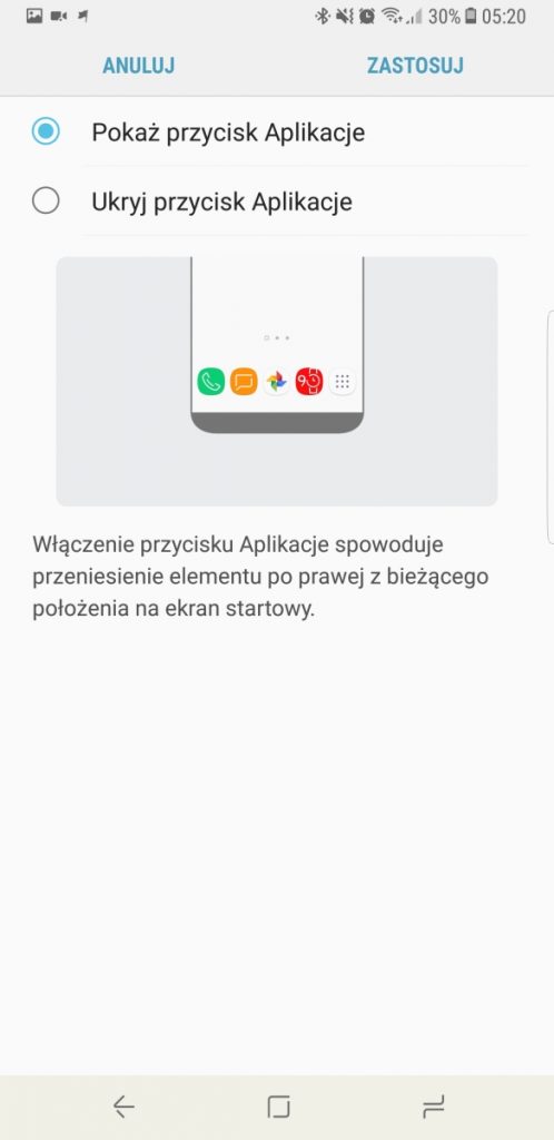 1. Samsung zrezygnował z osobnej ikony w docku pozwalającej dostać się do menu Aplikacji i można to zrobić po prostu przeciągając na ekranie głównym palcem z dołu do góry. Jeśli ktoś zatęskni za starym sposobem – może to ponownie włączyć.