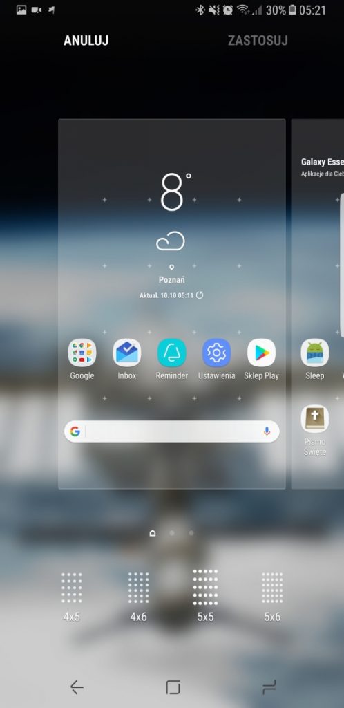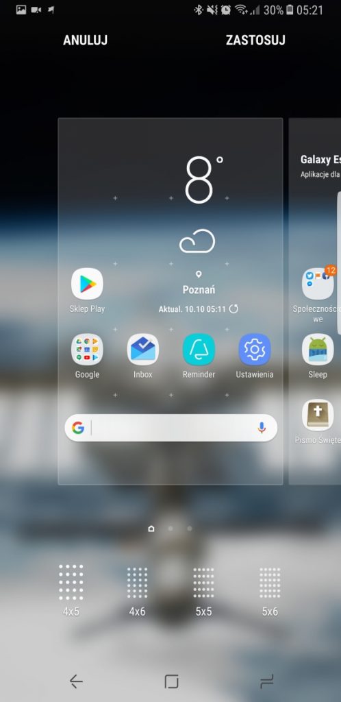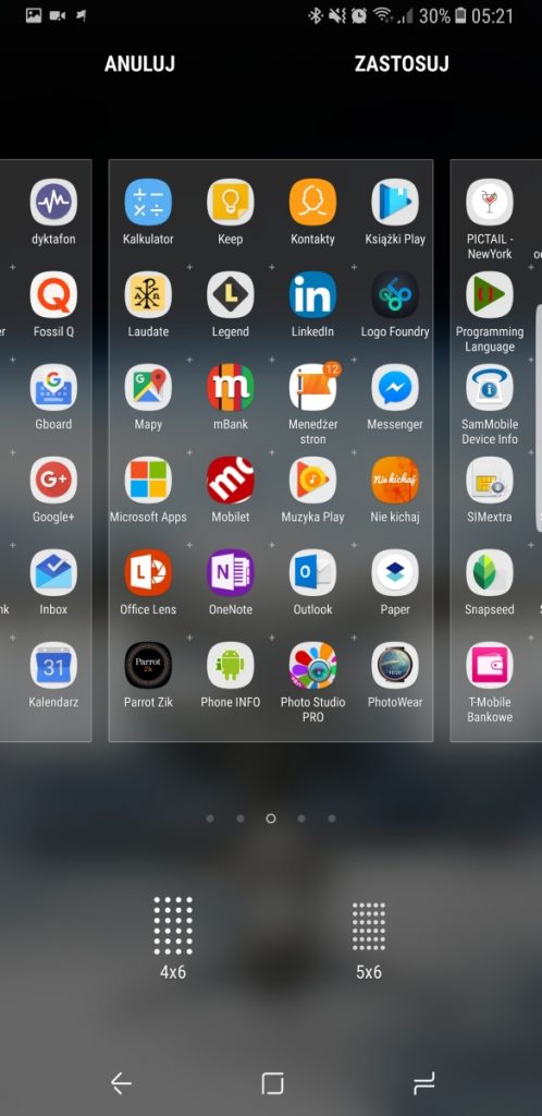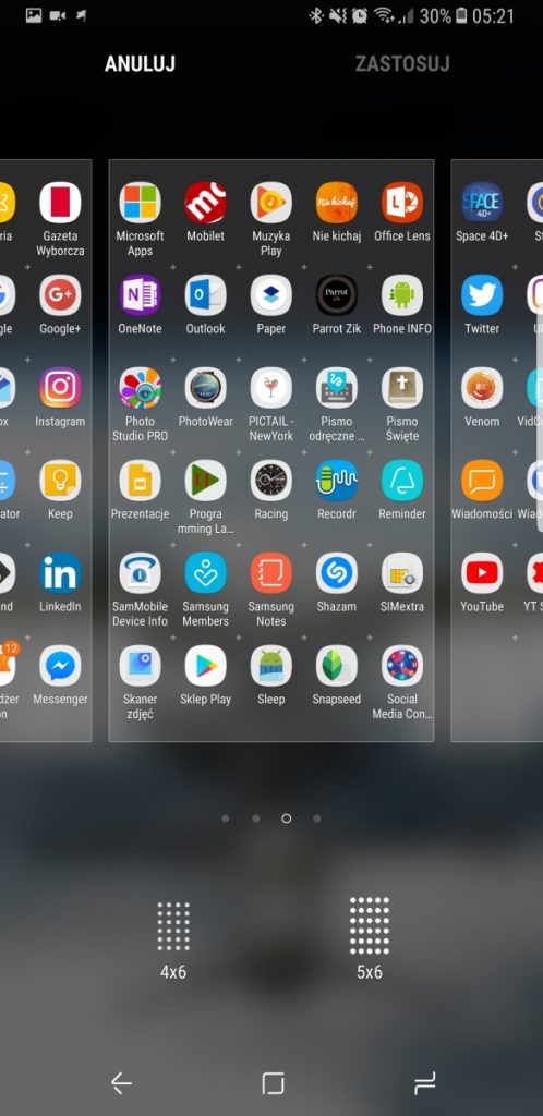 5. Pod kątem personalizacyjnym możesz zmienić siatkę ikon na pulpicie (im większa, tym więcej apek się na niej zmieści), a także w menu z aplikacjami. Ponadto jest sklep Galaxy Apps z nieskończoną ilością motywów, które są w wersji płatnej i bezpłatnej, z niekończącymi się tapetami, ikonami, a nawet rozwiązaniami pod wyświetlacz Always-On-Display.