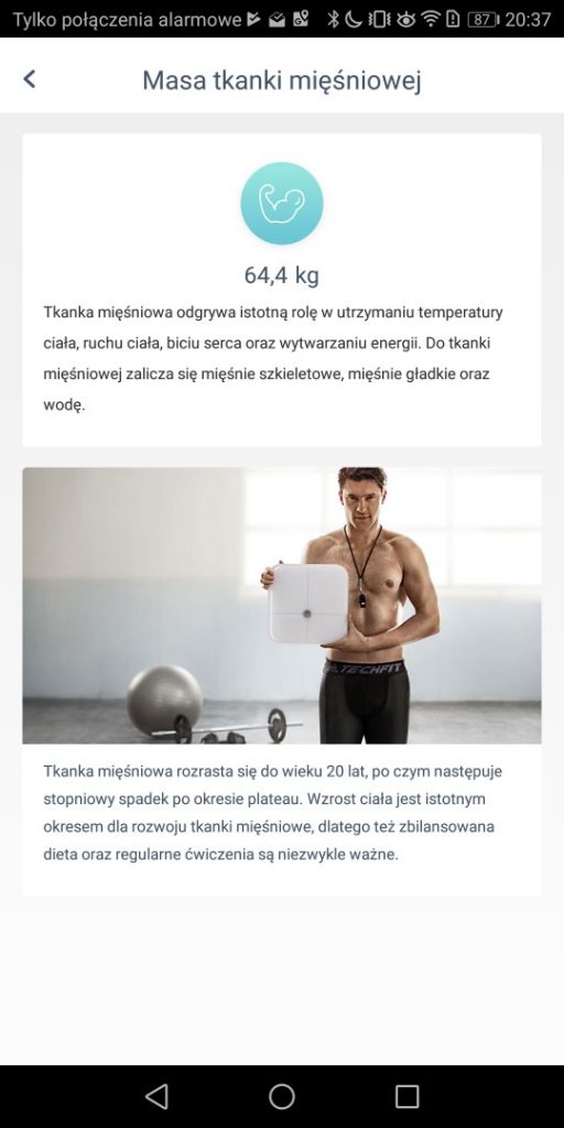 Informacje o wszystkich powyżej opisanych przeze mnie skrótowo parametrach, można znaleźć oczywiście w aplikacji, która dedykowana jest wadze Huawei Body Fat Scale AH100. Ale mają one jeden poważny defekt, który dobrze, gdyby udało się producentowi poprawić, a właściwie uzupełnić. Otóż analityka nie jest zaawansowana. Chodzi o to, że masz wyjaśnione co to jest BMC, PPM czy BMI, ale nie jest to analizowane pod kątem tego, ile faktycznie ważysz. Nie wiesz więc, czy masz nadwagę, czy też nie. Bo to, że masz lekki brzuszek nie musi wcale oznaczać, że jesteś osobą otyłą. Po przeżyciu iluś wiosen przemiana materii zwalnia i dla każdego typu człowieka, na podstawie wzrostu, wieku, płci i właśnie zgromadzonych danych, można określić średnią, do której powinno się starać równać. A takiej informacji brakuje, przez co trudno traktować wagę Body Fat Scale AH100, jako coś więcej aniżeli tylko źródło suchej informacji.