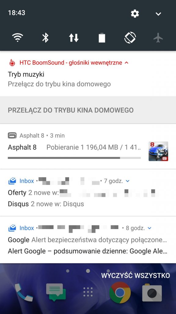 Fajnie natomiast, że HTC zaimplementował technologię bliźniaczą do Always-On-Display na drugim ekranie, który na minimalnym podświetleniu prezentuje wyszarzone ikonki powiadomień, godzinę oraz… można palcem przewijać dostępne na nim opcje, w tym przeglądać notatki, zadania kalendarzowe, czy po prostu zarządzać włączaniem lub wyłączaniem poszczególnych opcji, takich jak latarki, WiFi, wyciszenia, łączności Bluetooth etc. Wprawdzie ekran ten się wygasza po chwili i do końca nie jest to tak, jak w LG, Motorolach czy Samsungach, a nawet Nexusach, niemniej czuć, że HTC próbuje tutaj swoich sił i pomysł ten zły nie jest. Ale zdecydowanie wymaga bardziej kompleksowej organizacji i dopracowania.