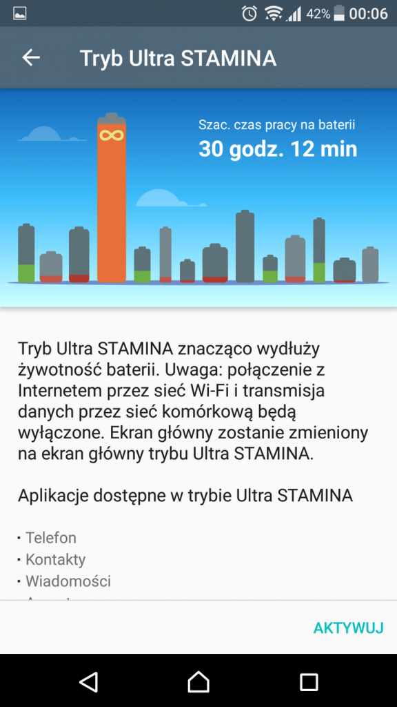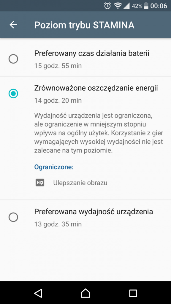 Nie zapominam też o Trybie STAMINA a także Ultra STAMINA, które przydadzą się w momencie, gdy zabraknie dostępu do gniazdka elektrycznego lub powerbanka. Wówczas zostają ograniczone chociażby dane wymieniane w tle, ale to są rozwiązania na podbramkowe sytuacje.