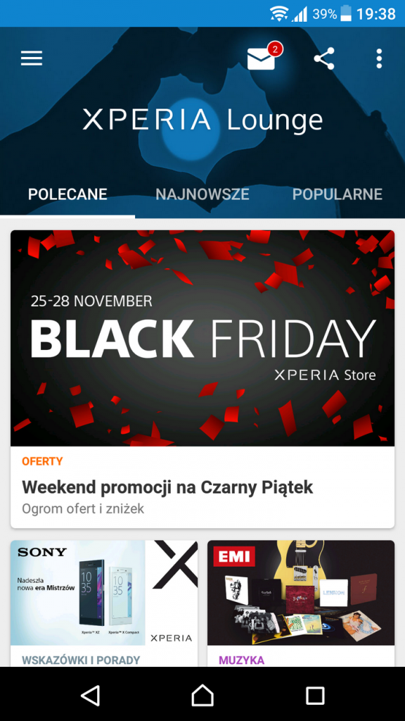 Xperia Lounge – mam problem trochę z tą aplikacją. Z pozoru wygląda wszystko świetnie. Jest to bowiem miejsce, gdzie możesz wziąć udział w licznych konkursach, znajdziesz tu sporo dedykowanych motywów, obejrzysz trailer filmu, wyszukasz wskazówki, jak najlepiej wykorzystać swojego smartfona. Mocno podkreślona jest tu także współpraca Sony z UEFA, a więc raj dla kibiców piłki nożnej. Jest też okazja odebrać kod do aplikacji Privilege Plus, gdzie uzyskasz dostęp na przykład do filmów, czy też innych bonusów.
