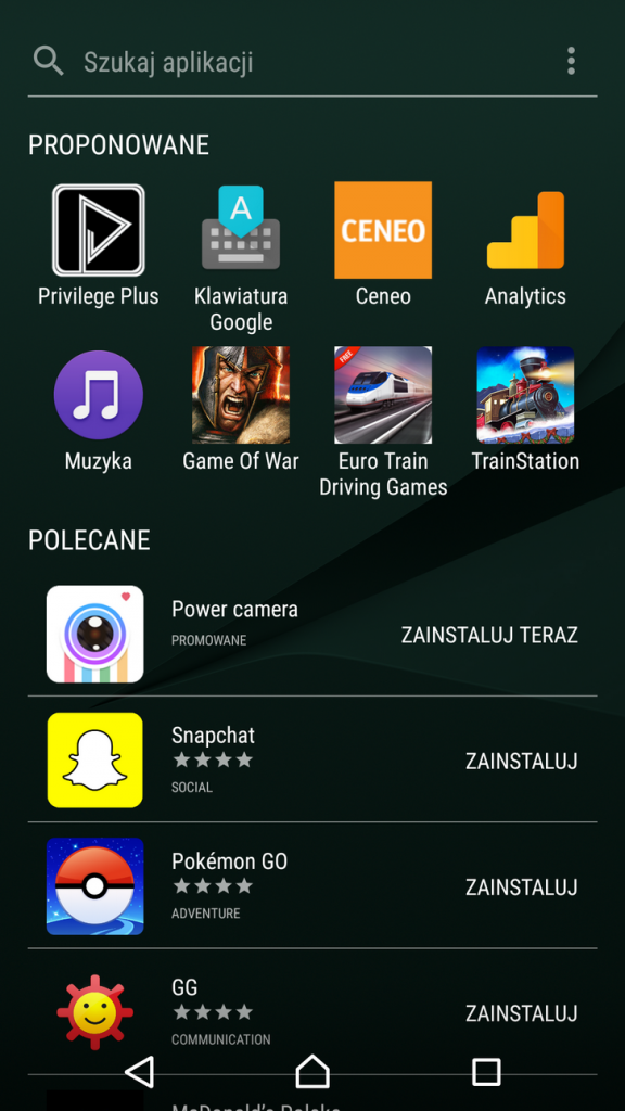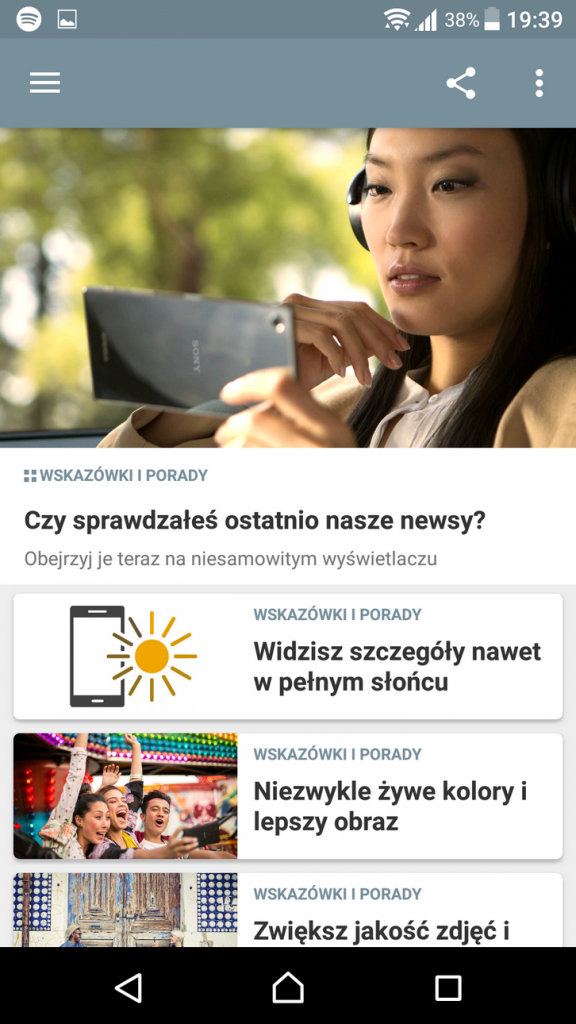 What’s New – kolejny element, bez którego spokojnie można byłoby się obejść. To sklep z aplikacjami, w którym polecane Ci są najróżniejsze propozycje, czy to aplikacje Sony, czy też firm trzecich. Nic szczególnego. Wygląda to trochę jak nakładka na Google Play, ale Japończycy w ten sposób zamiast prowadzić swój sklep, którym niegdyś był Sony Select, promują wybrane rozwiązania, które bardziej się im opłacają np. poprzez współpracę z jakimś partnerem.