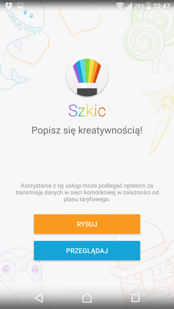 Szkic – aplikacja do rysowania. Prosta, bez żadnych udziwnień. Tylko, po co mi taka aplikacja? Gdyby to było jeszcze dopracowane bardziej w charakterze notatnika – w stylu, jaki zaproponował np. LG w Quick Memo Plus to bardzo proszę. A tak, Szkic nadaje się co najwyżej do zabawy.