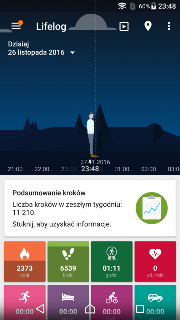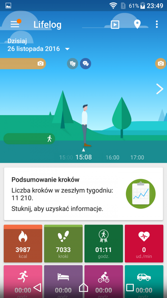 Lifelog – zgodnie z aktualną modą na bycie fit, Sony dba również o swoją aplikację, by ta była w dobrej formie. Praktycznie każdy z większych producentów posiada taką apkę i choć nie ma tutaj wielkiej filozofii, w głównej mierze są one od rejestrowania naszej aktywności, to Lifelog jest naprawdę dobrze zaprojektowana i skrojona pod każdą osobę. Zarówno te aktywne fizycznie, jak i trochę mniej.